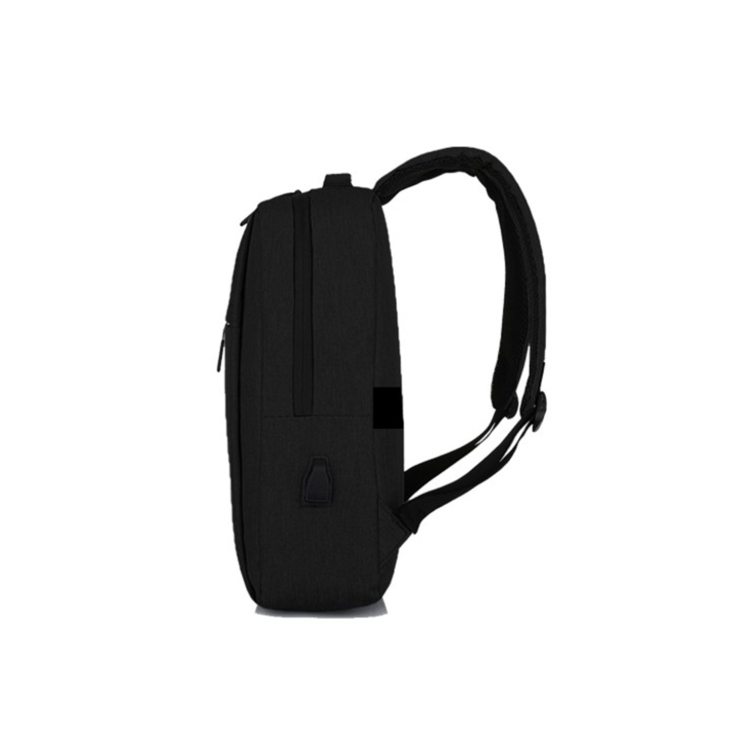 Городская модель рюкзака. На лицевой стороне рюкзака имеется внешний карман на замке. С левой стороны имеется один открытый боковой карман, а с правой стороны есть USB-разъем с проводом внутри для подключения внешнего аккумулятора. Основное отделение имеет внутренний карман для ноутбука.