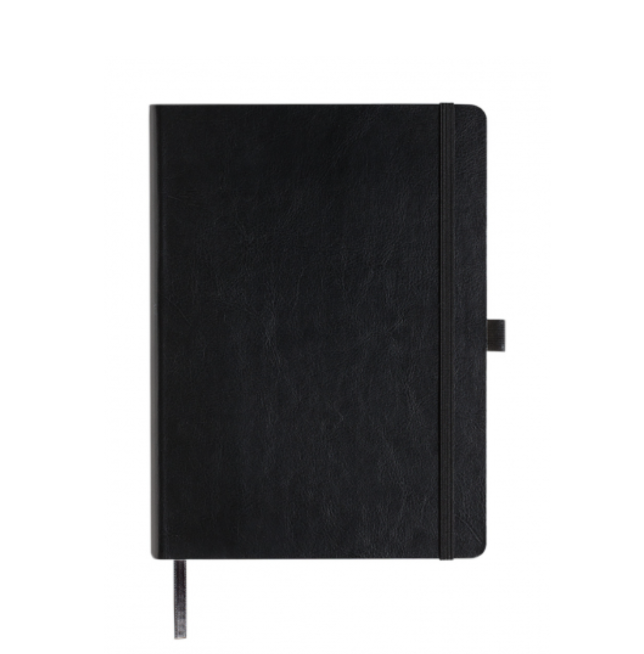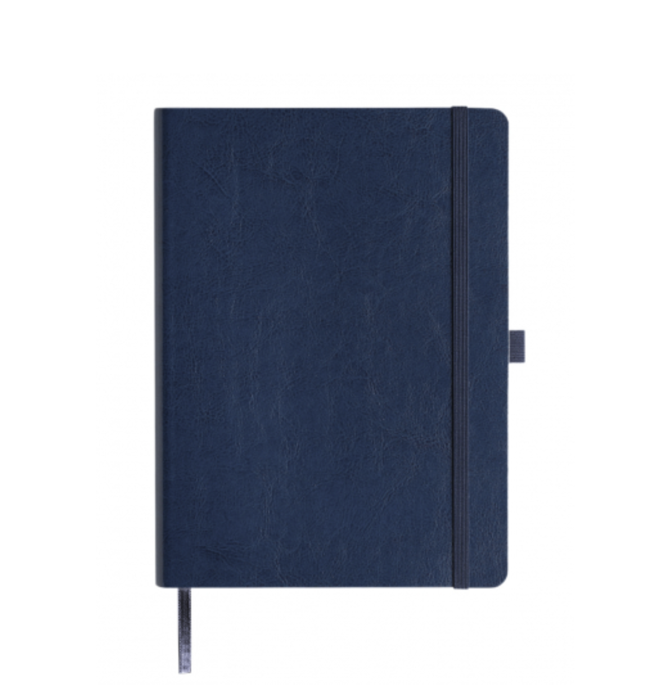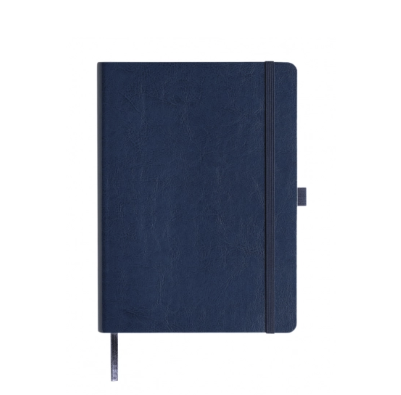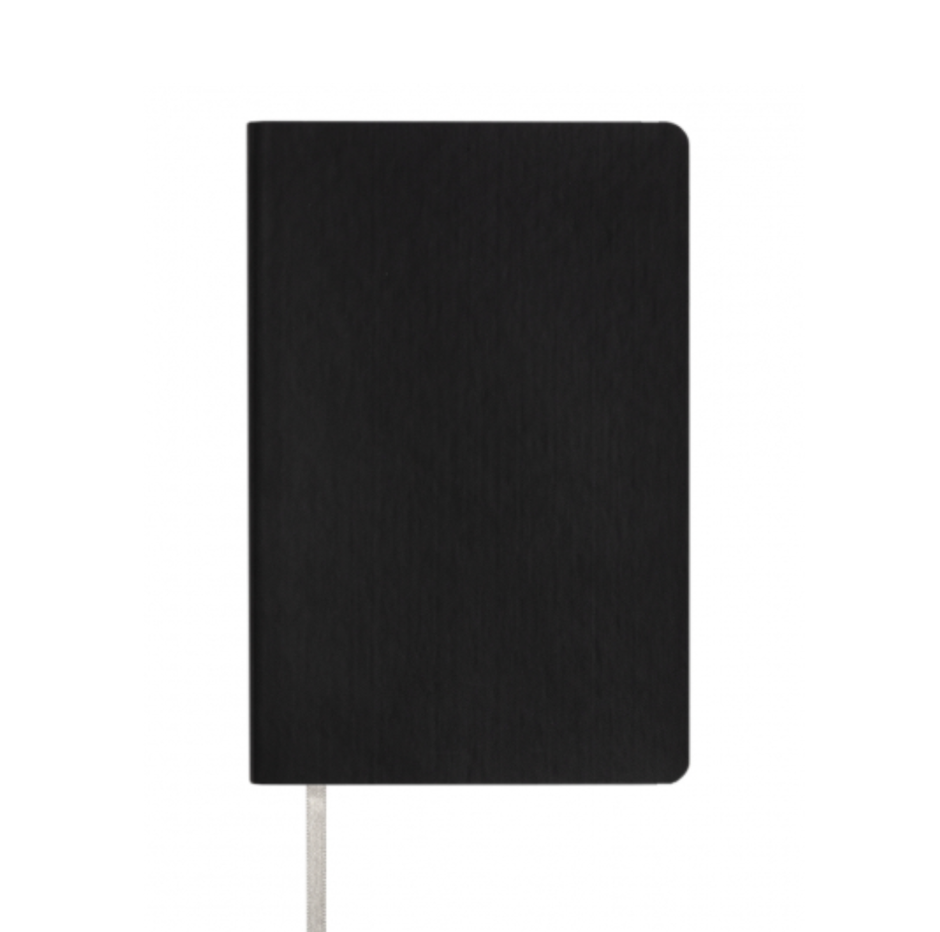 Недатированный блокнот A5 формата. Размер обложки 145*210 мм. Размер внутреннего блока 140x204мм. 288 страниц. Бумага 70 гр. Цвет айвори. Ляссе, крепление для ручки и эластичная резинка одного цвета. Конверт на заднем эрзатце.
