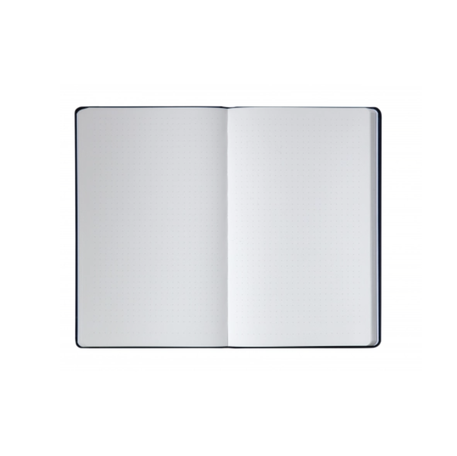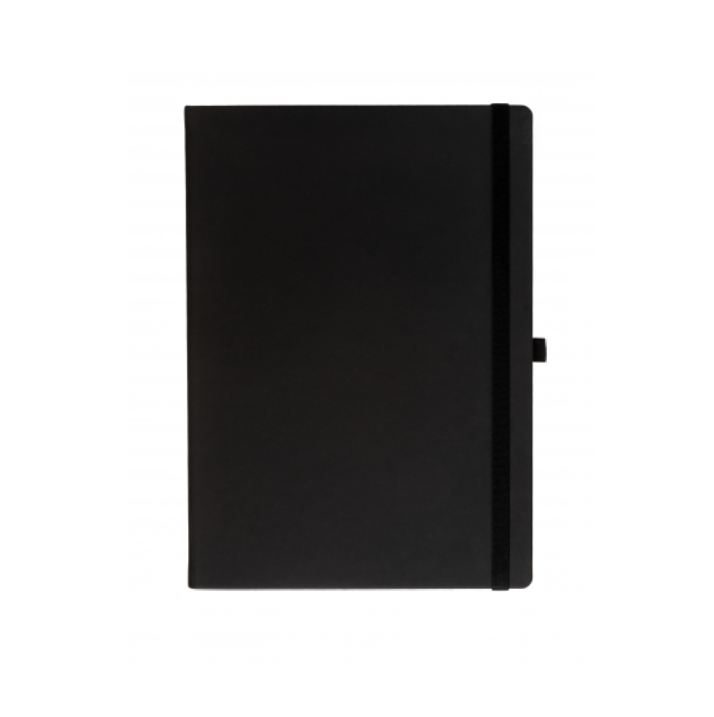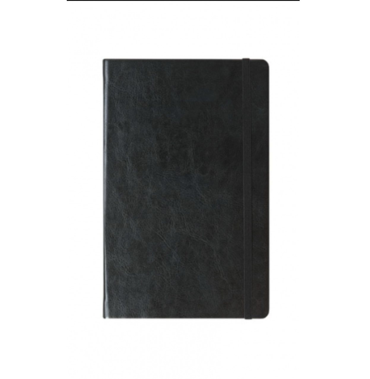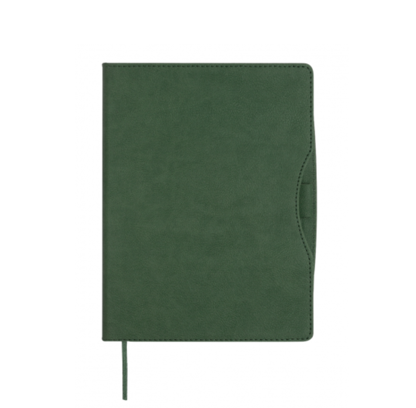 Недатированный блокнот A5 формата. Размер обложки 145*210 мм. Размер внутреннего блока 140x204мм. 288 страниц. Бумага 70 гр. Цвет айвори. Ляссе, крепление для ручки и эластичная резинка одного цвета. Конверт на заднем эрзатце.
