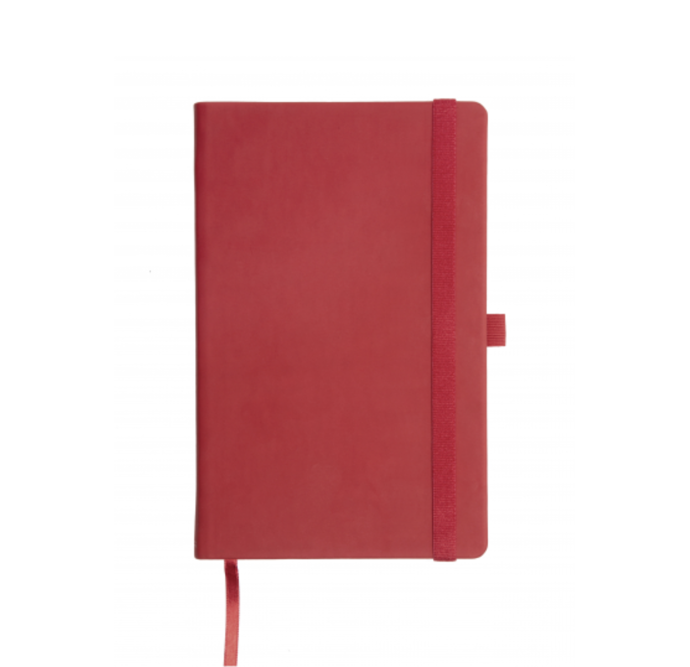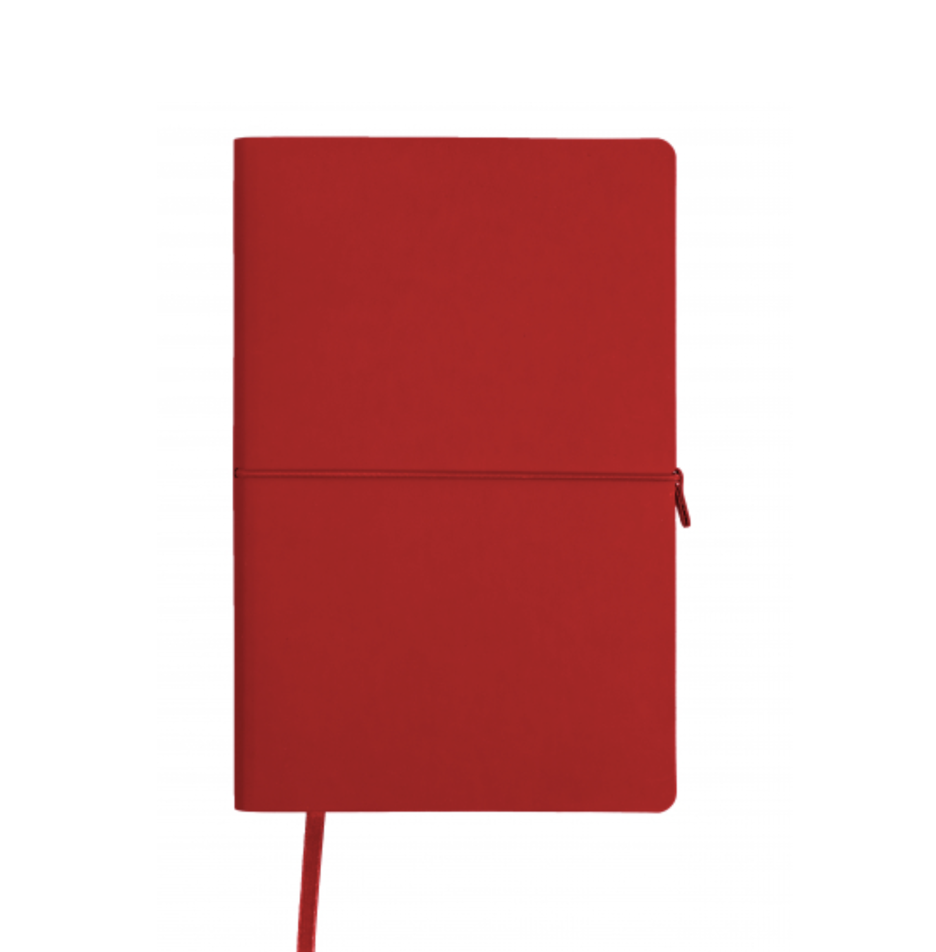 Блокнот формата А5. Размер обложки 145*210 мм. Размер внутреннего блока 140x204мм. Переплет мягкий. Обложка термоактивный PU. Резинка горизонтальная, 2 мм. Блок недатированный, в линейку 288 стр. Скругленные углы, двухкрасочная печать. Ляссе в тон обложки.