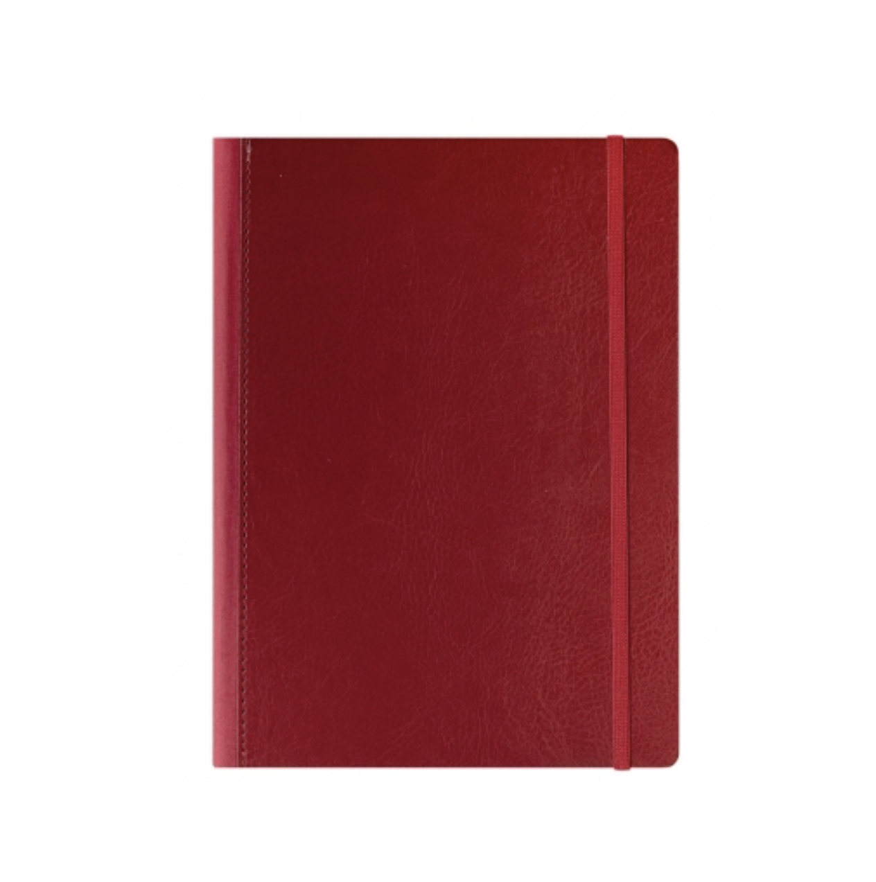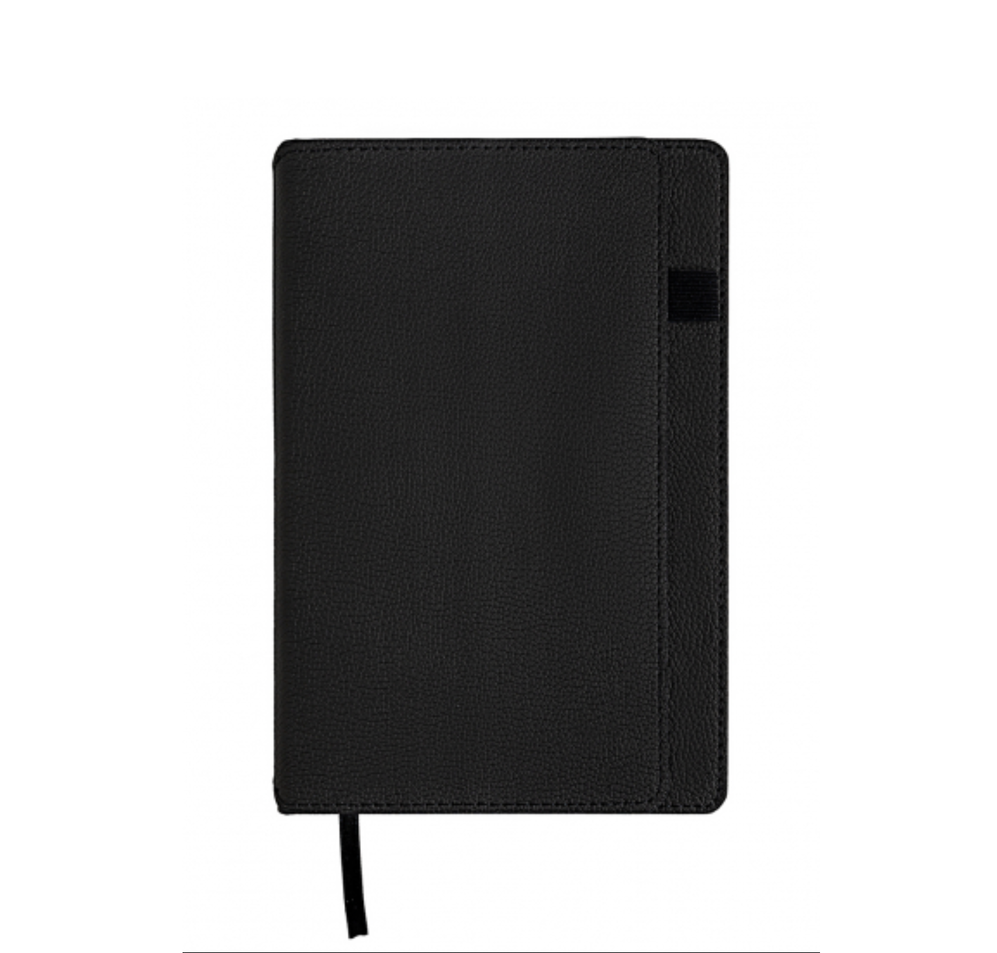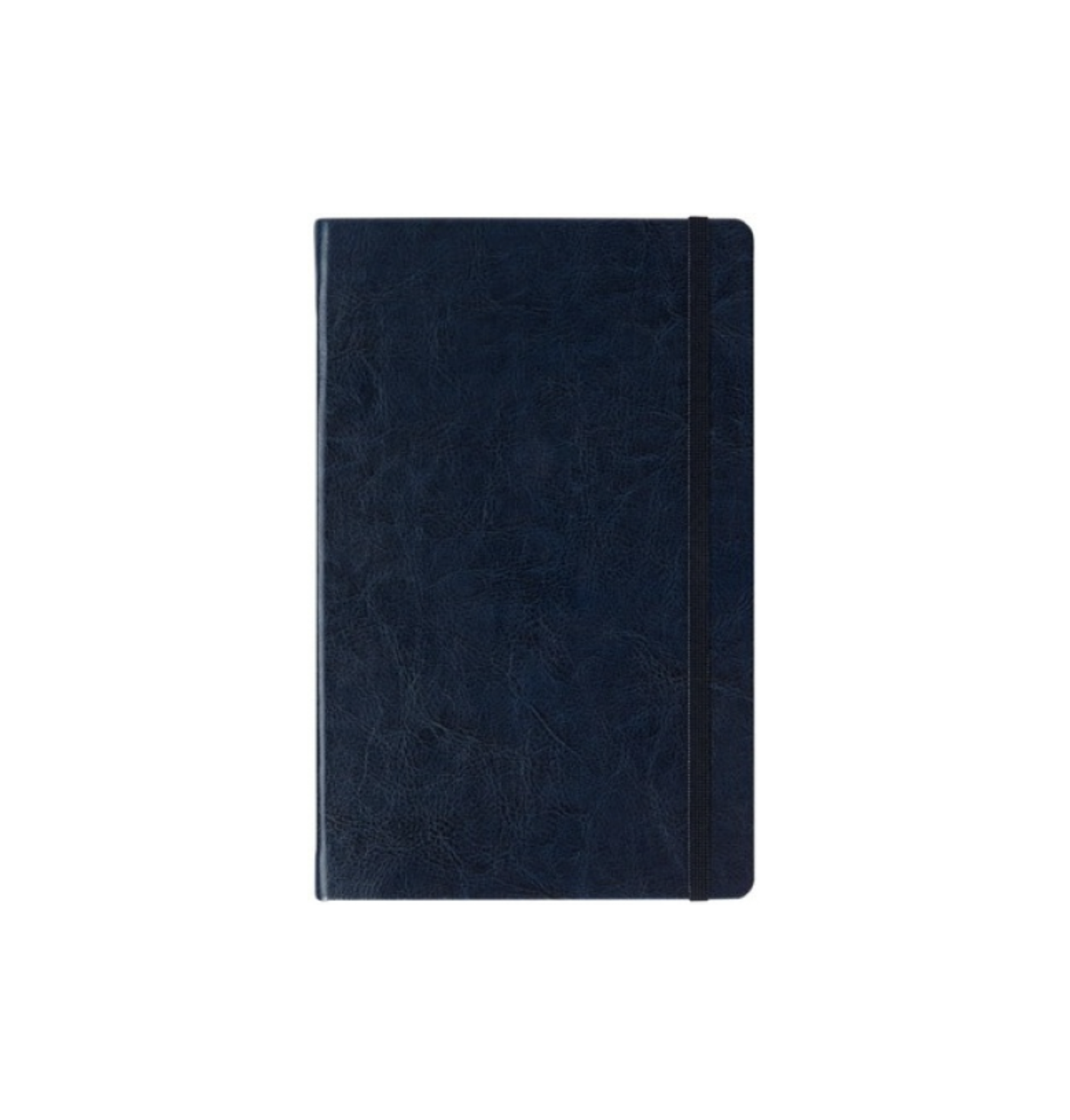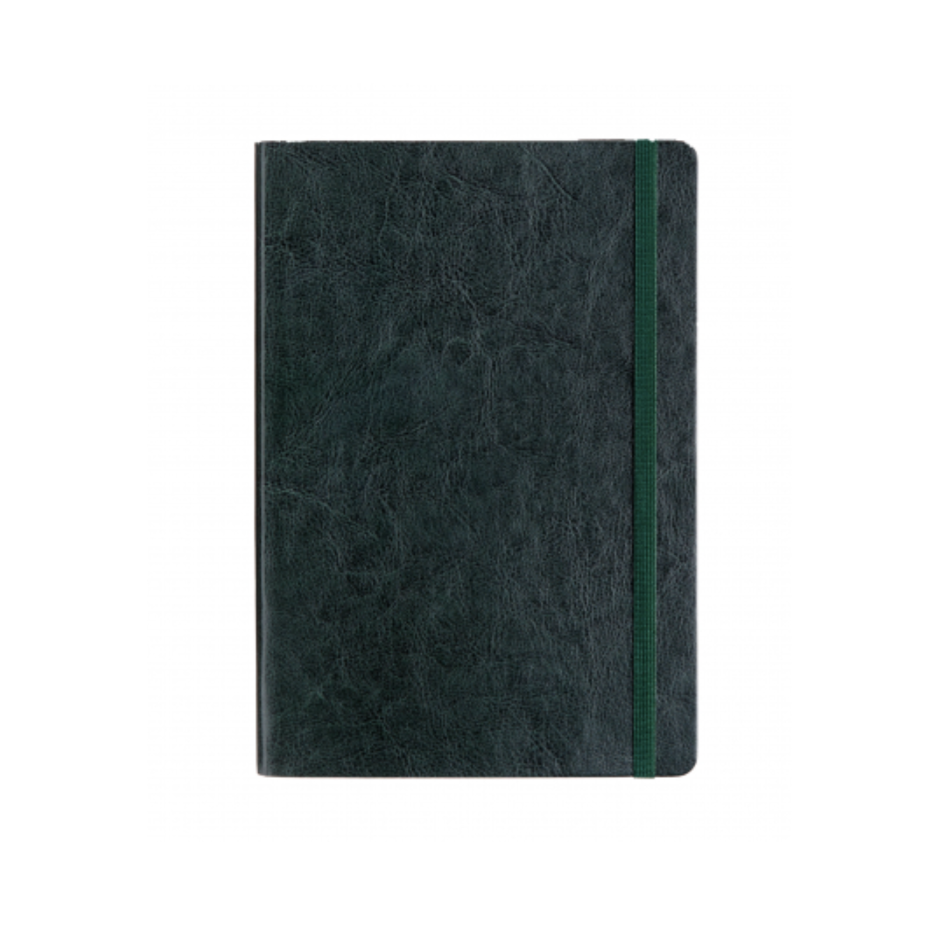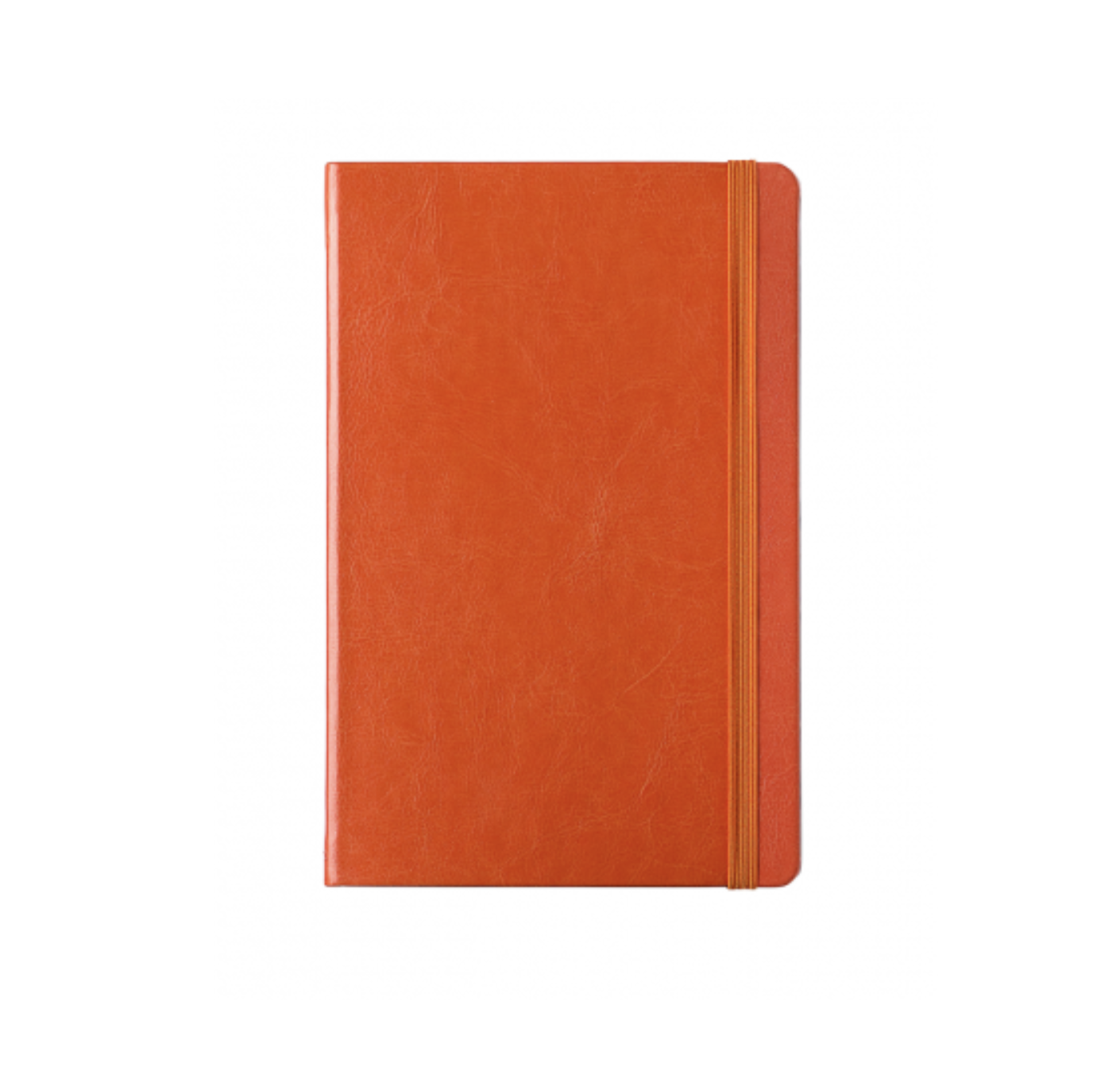 Недатированный блокнот в твердой обложке формата А5. Обложка сделана из искусственной эко кожи, с фактурой кожи. Эластичная резинка, лиссе в тон обложки. Форзац и нахзац цвета айвори.
