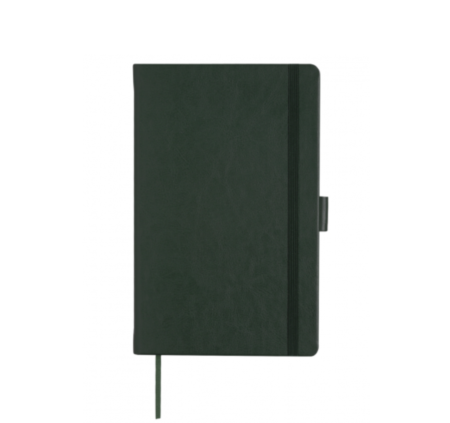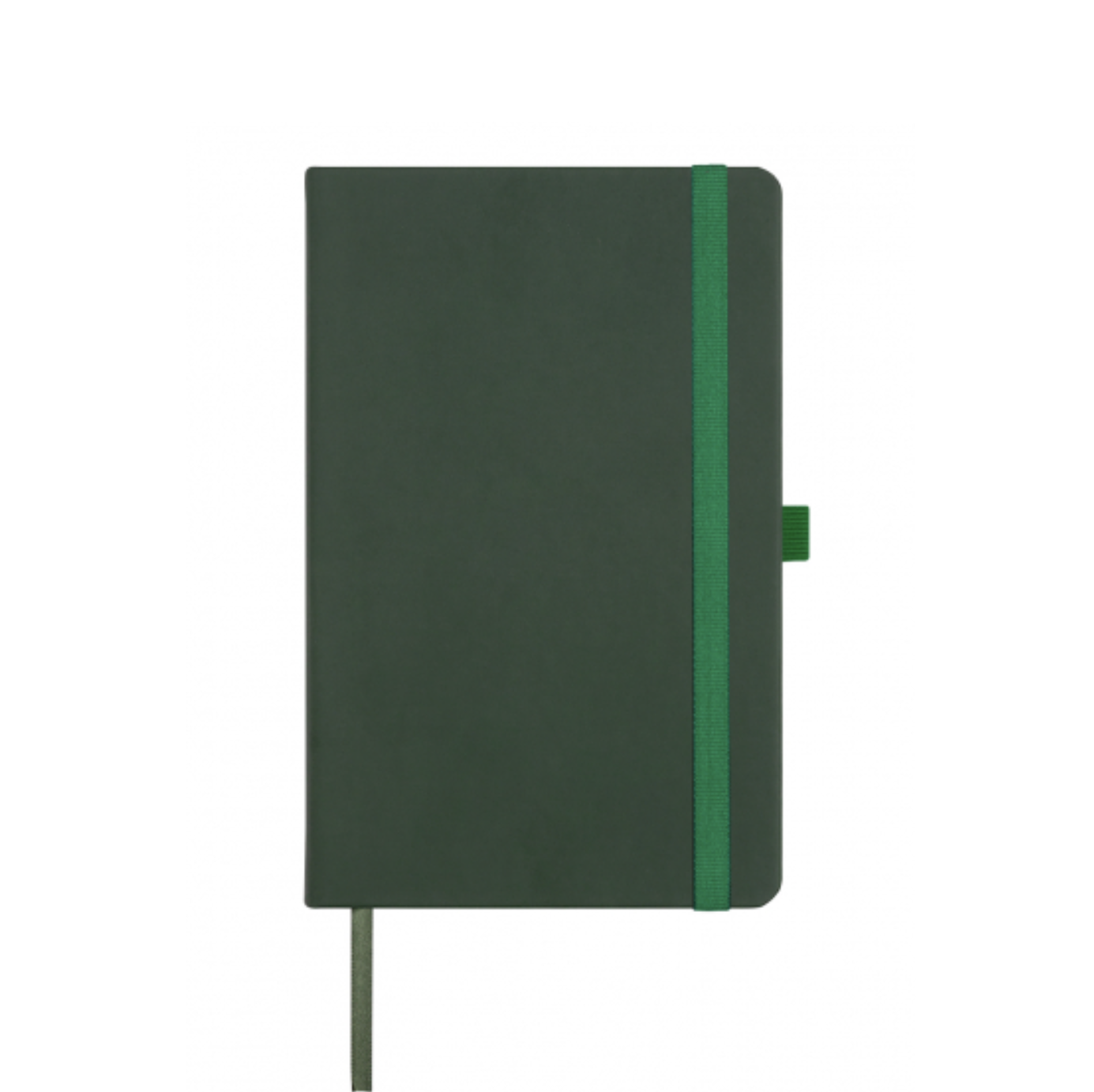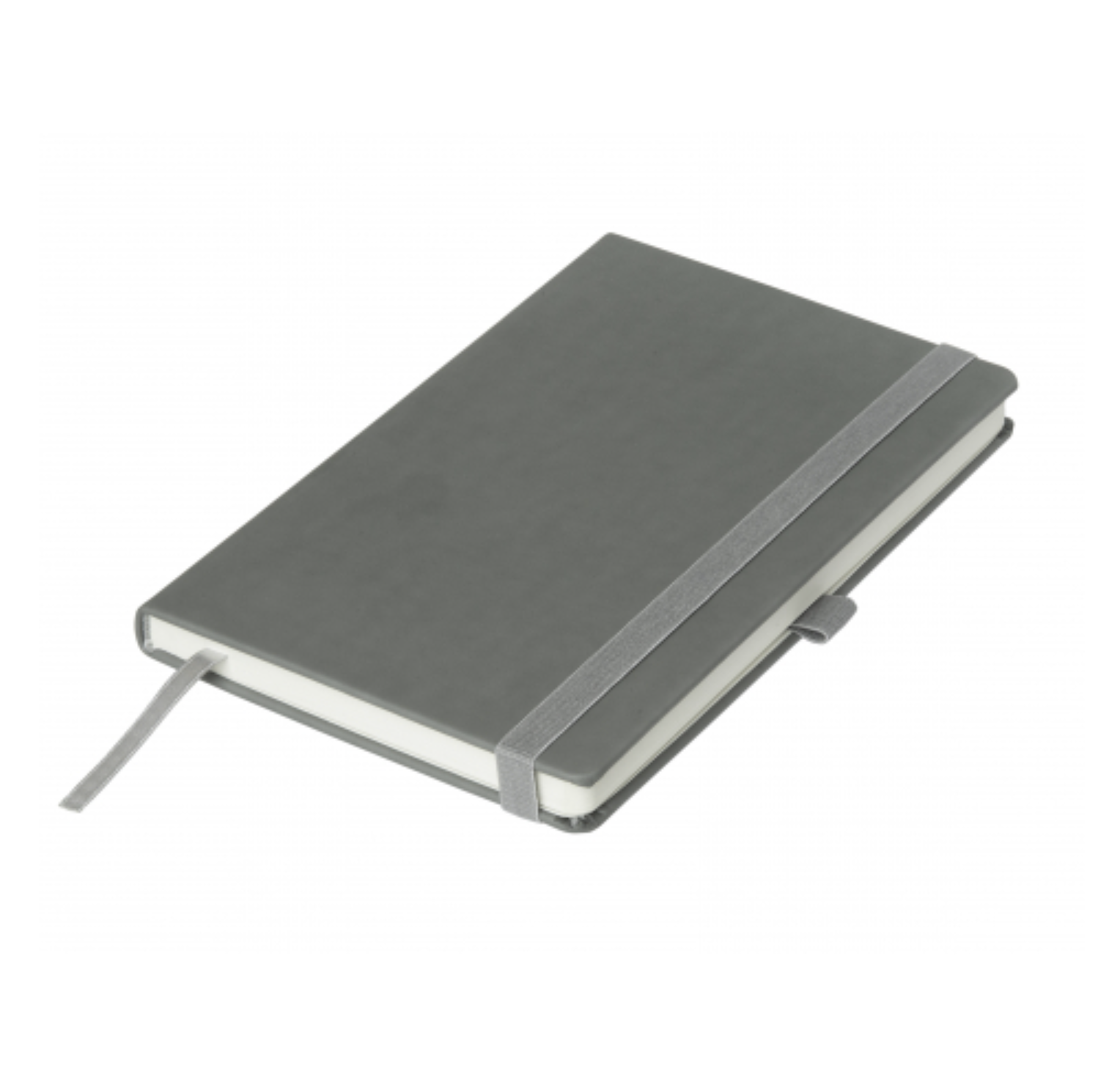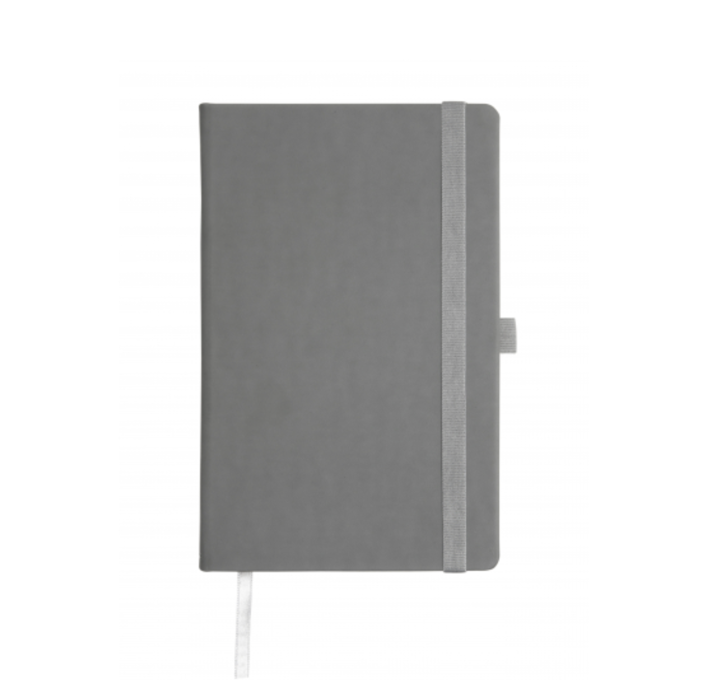 Блокнот формата А5 с твердым покрытием из PU-материала с имитацией рисунка кожи, с эластичной резинкой и текстильной закладкой в цвет блокнота, 192 страницы, плотность 70г/м, блок в линейку.