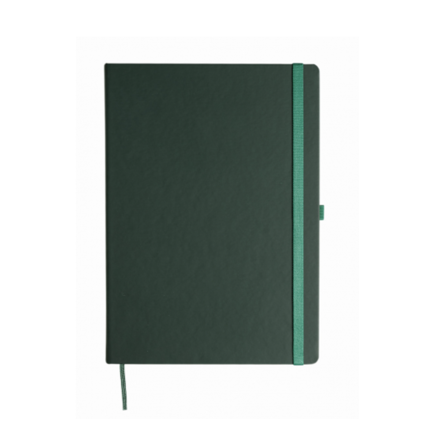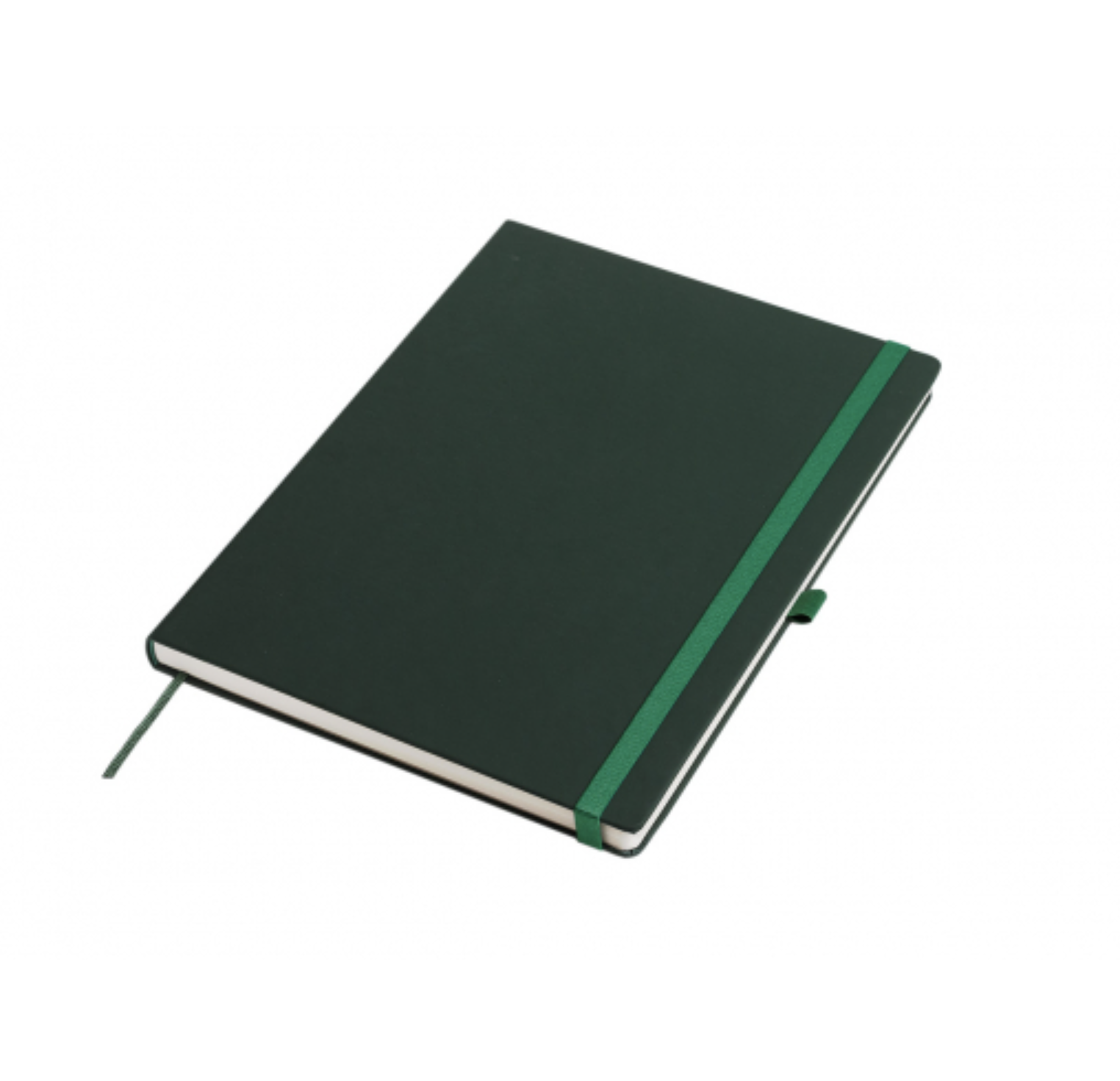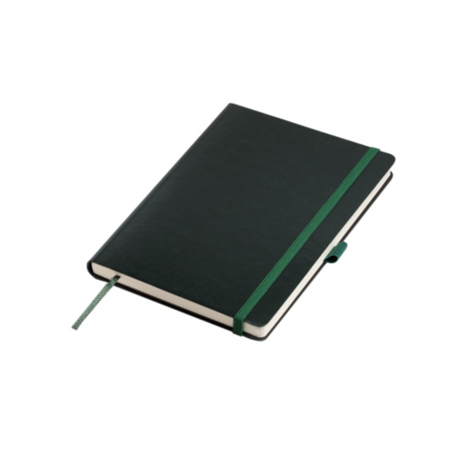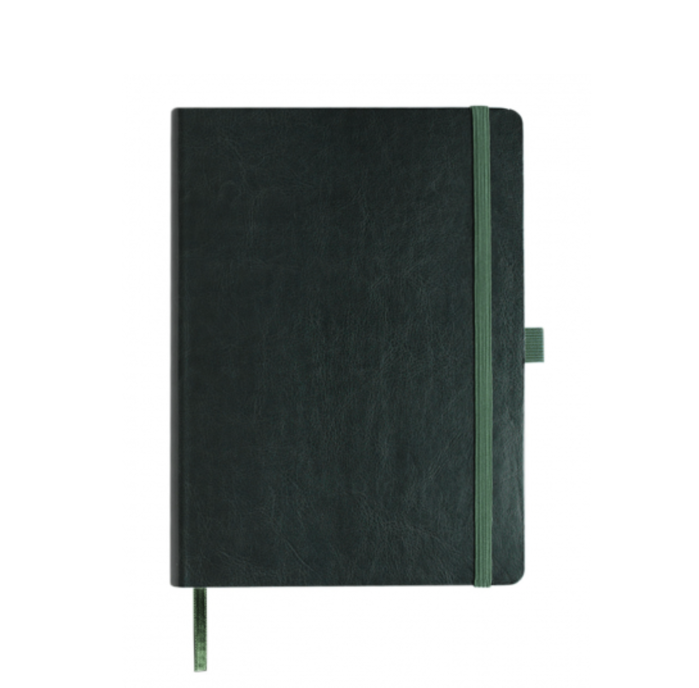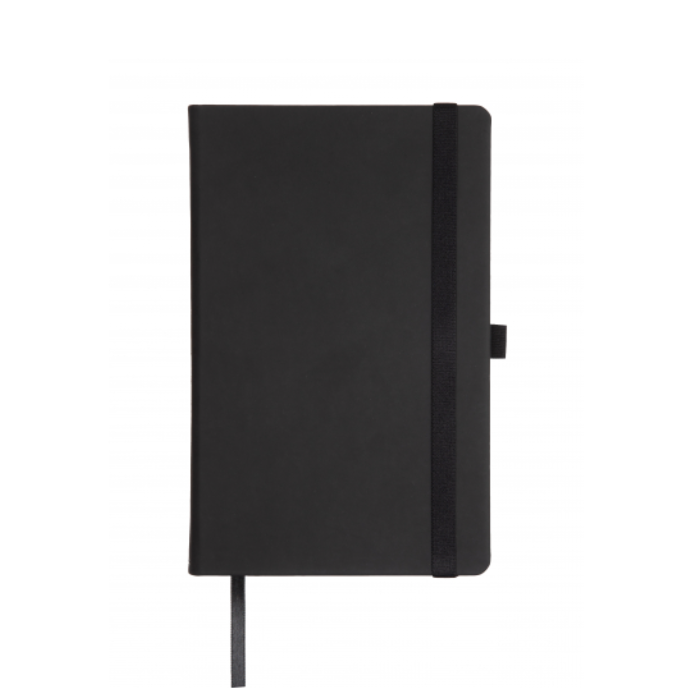 Блокнот формата А5 с твердым покрытием из PU-материала с имитацией рисунка кожи, с эластичной резинкой и текстильной закладкой в цвет блокнота, 192 страницы, плотность 70г/м, блок в линейку.