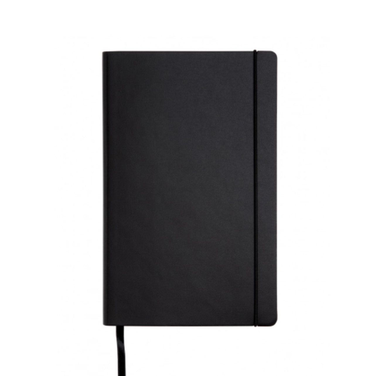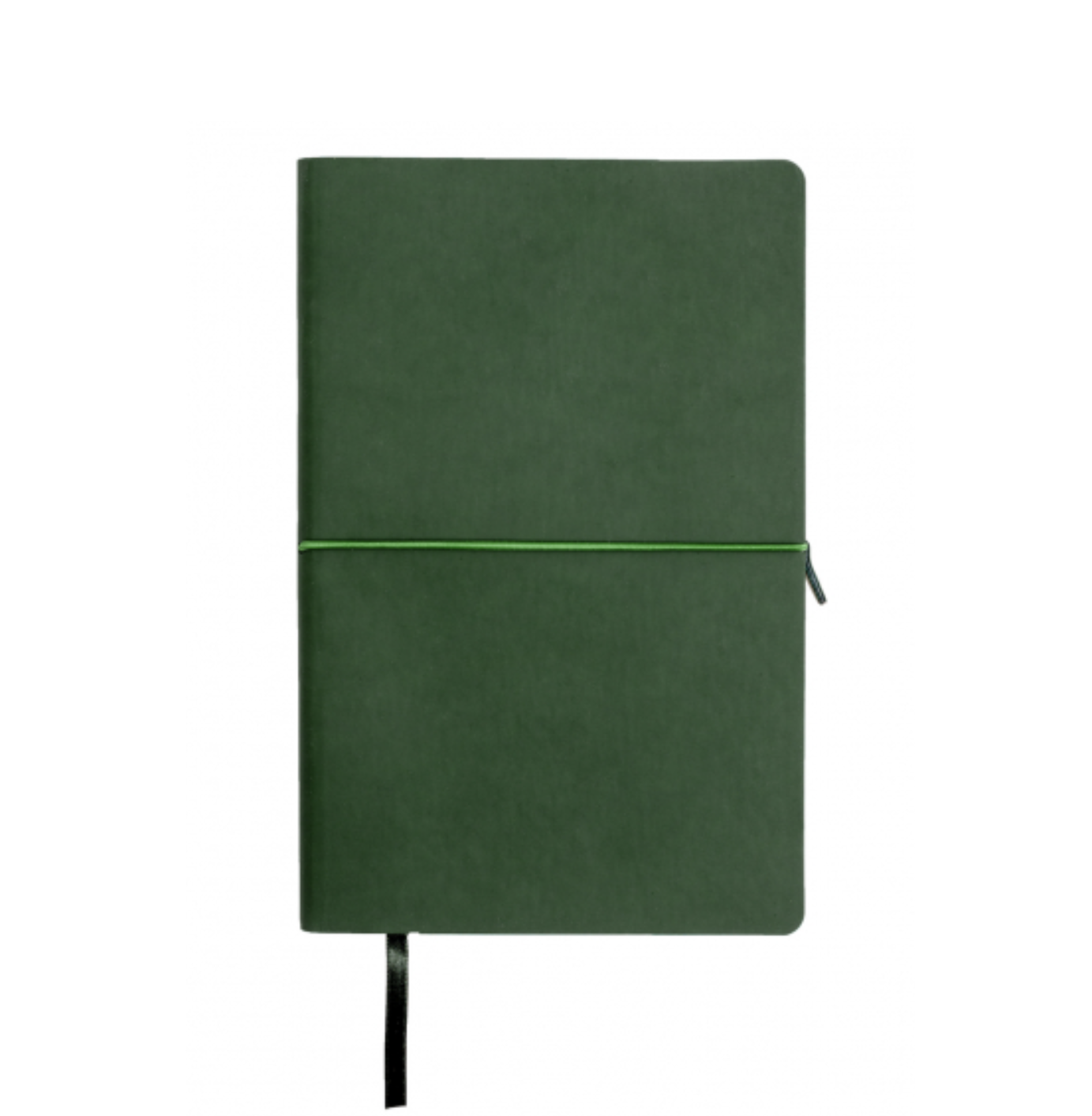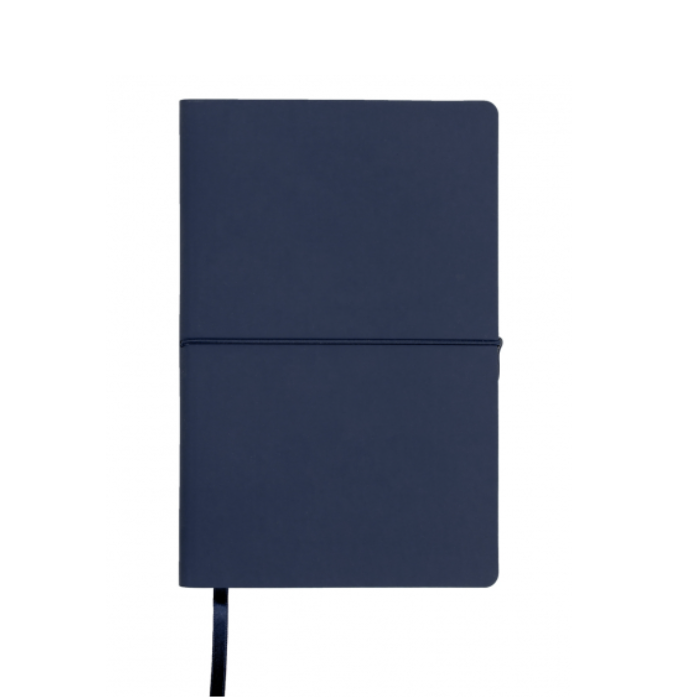 Блокнот на резинке формата А5. Гибкая обложка с приятной фактурой Soft Touch, углами закругленной формы, ляссе в цвет обложки, петля для ручки – наделяют блокнот практичностью. Блок в линейку, 160 стр., изготовлен из бежевой бумаги плотностью 70 г/кв.м. Карман на внутренней стороне обложки. Упаковка - слив-бокс.