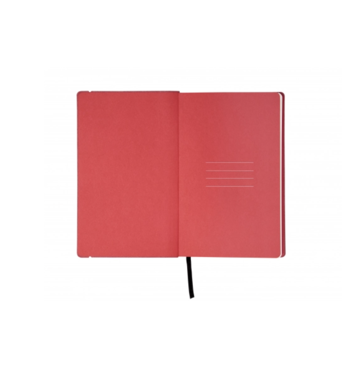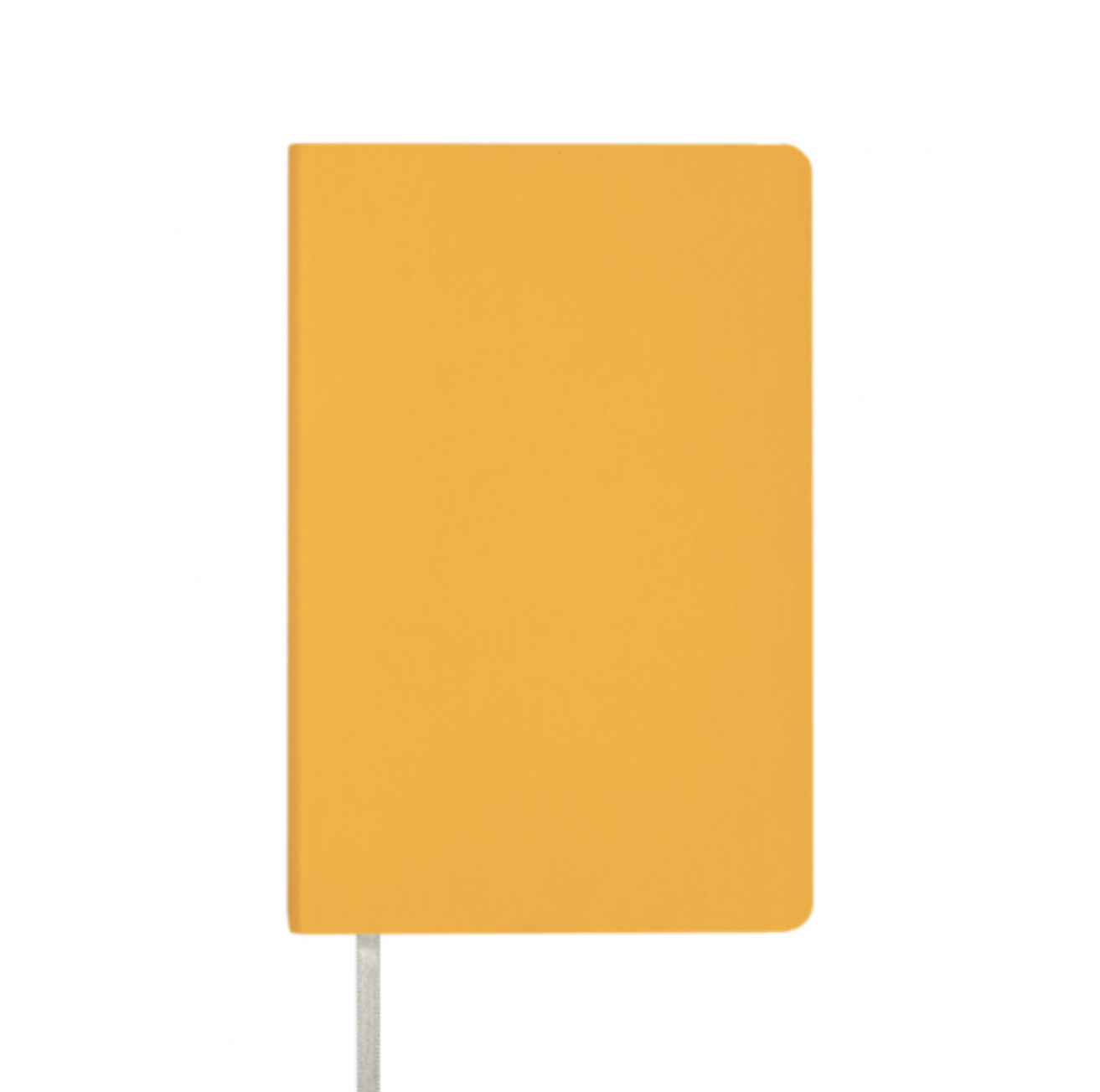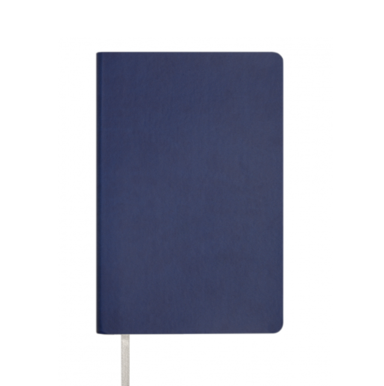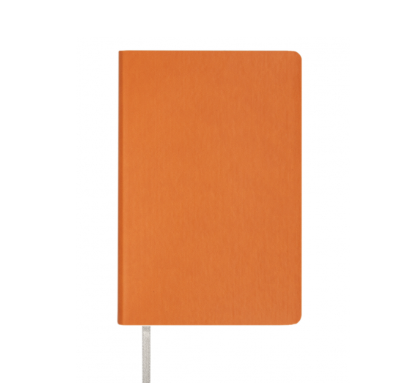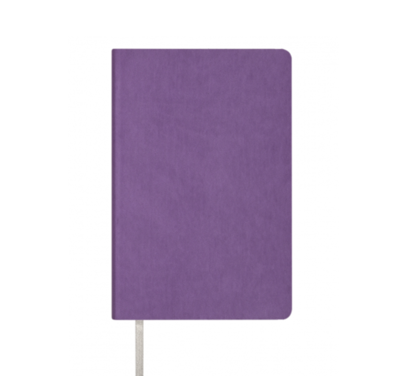 Блокнот формата А5 с мягким покрытием софт-тач из PU-материала с имитацией рисунка кожи, с текстильной закладкой в цвет блокнота. Обложка - мягкая. 256 страниц, плотность бумаги 70г/м. Блок в линейку.