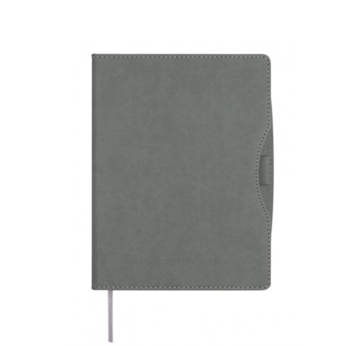 Блокнот недатированный SOFT TOUCH. Ультра мягкая приятная на ощупь текстура эксклюзивно для Niccolo Saccineli. Надежный прошитый переплет. Форзац и нахзац серого цвета, близок к pantone 428U. Айвори бумага (блок 70 гр, форзац 160 гр). Блок 288 стр. в линейку. Карман для записок в тон нахзац серый. близок к pantone 428U.