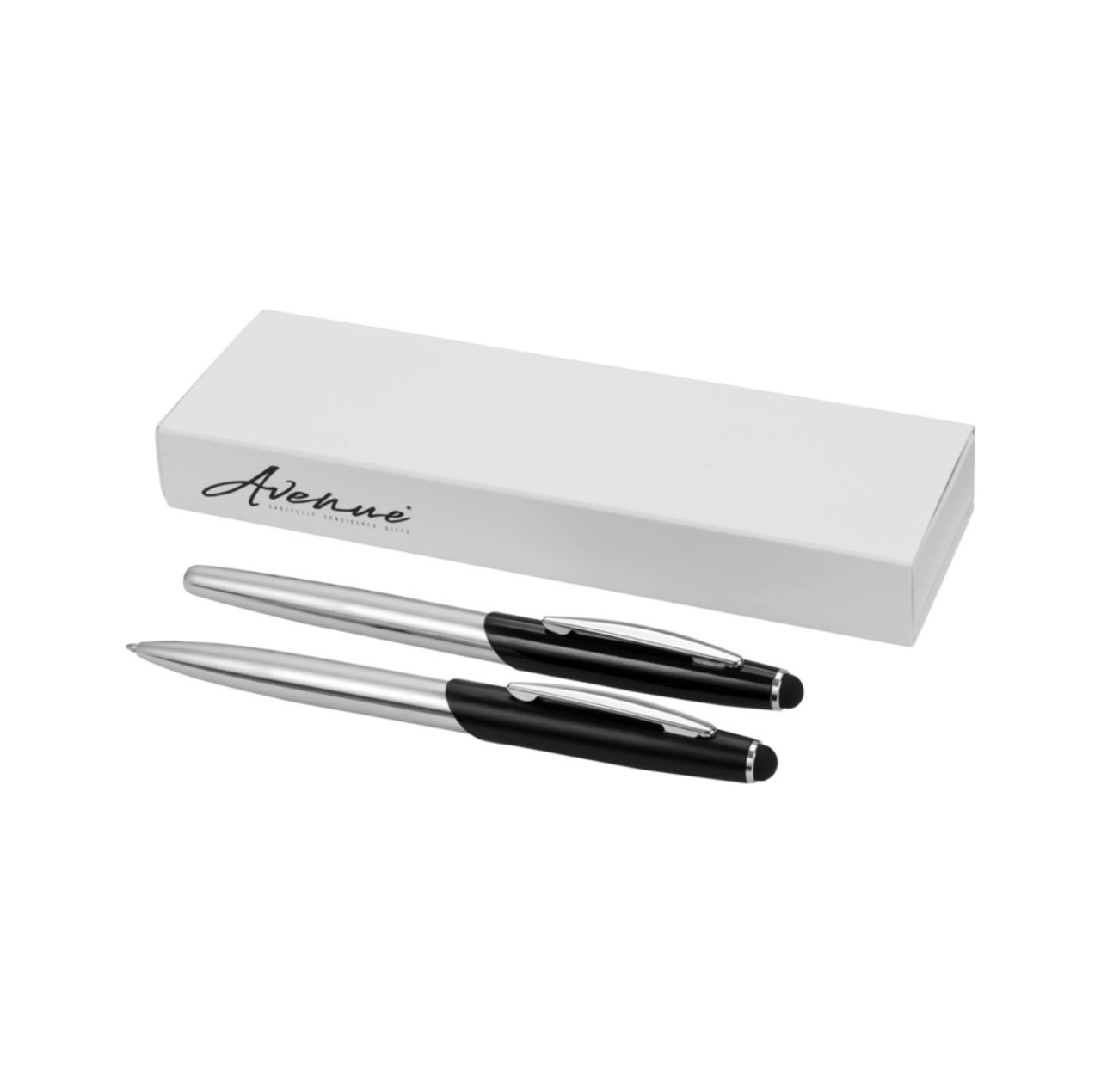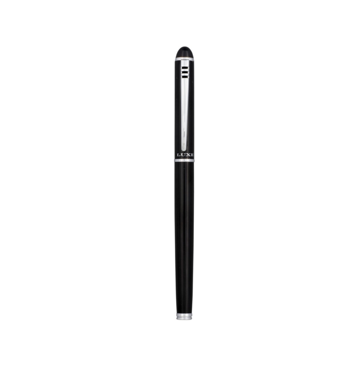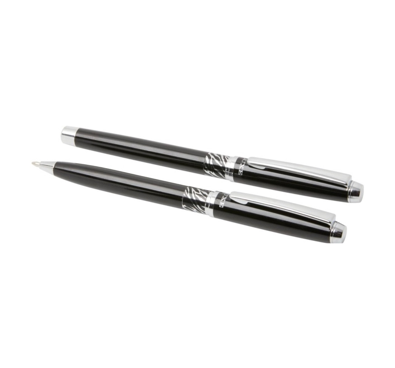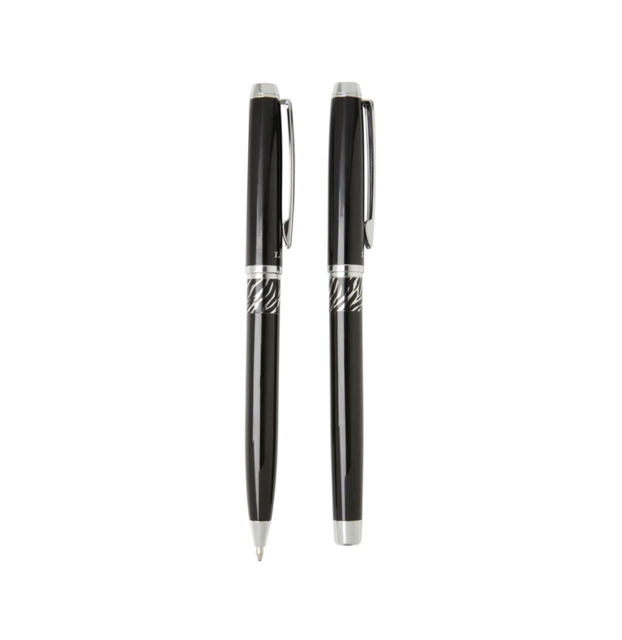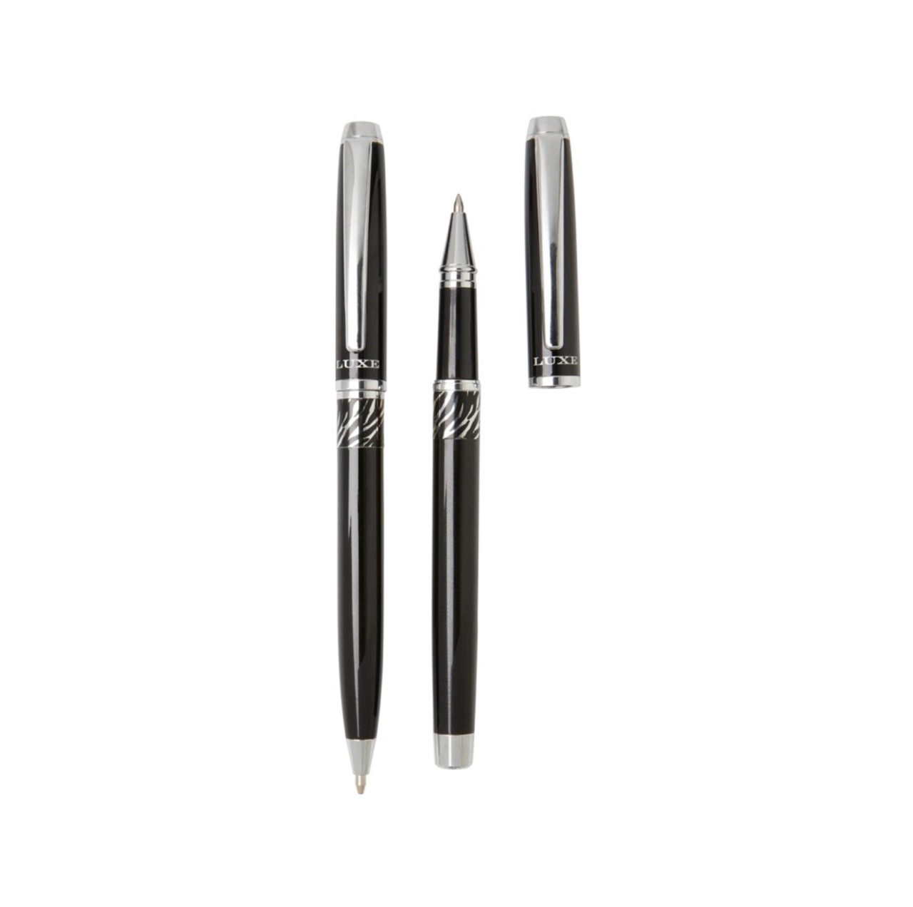 Эксклюзивный набор с шариковой ручкой с поворотным механизмом и ручкой-роллер с колпачком. Предлагается глянцевый черный, матовый серебряный и матовый синий цвета. Предлагается в подарочной коробке LUXE. Металл.