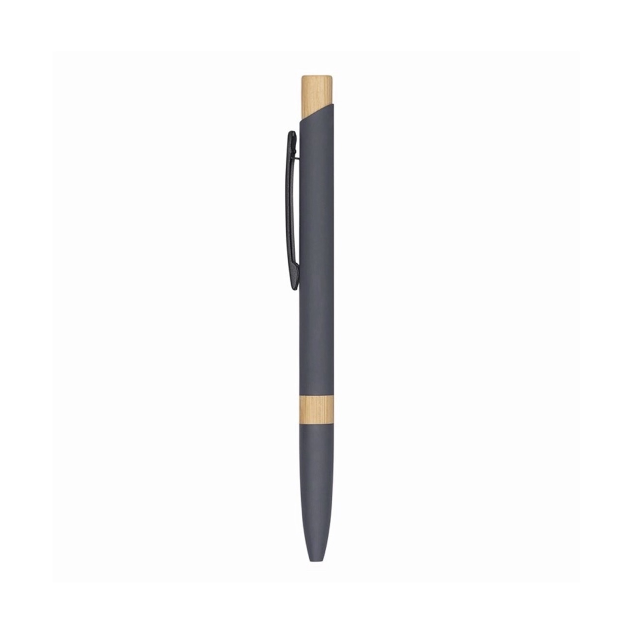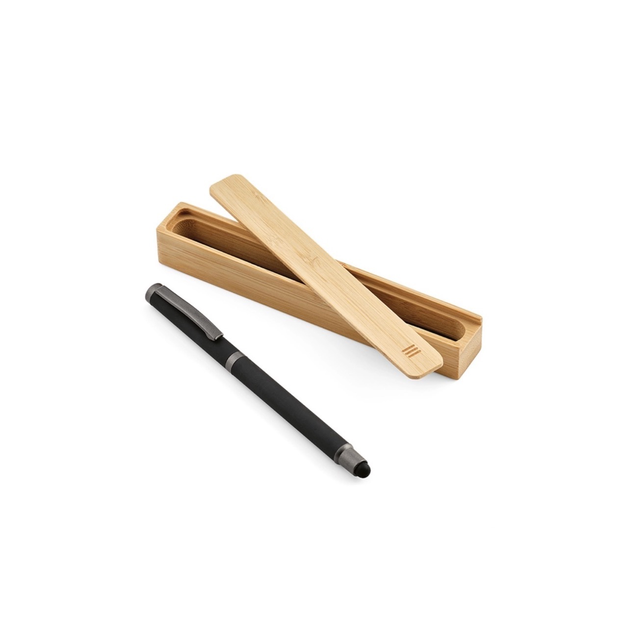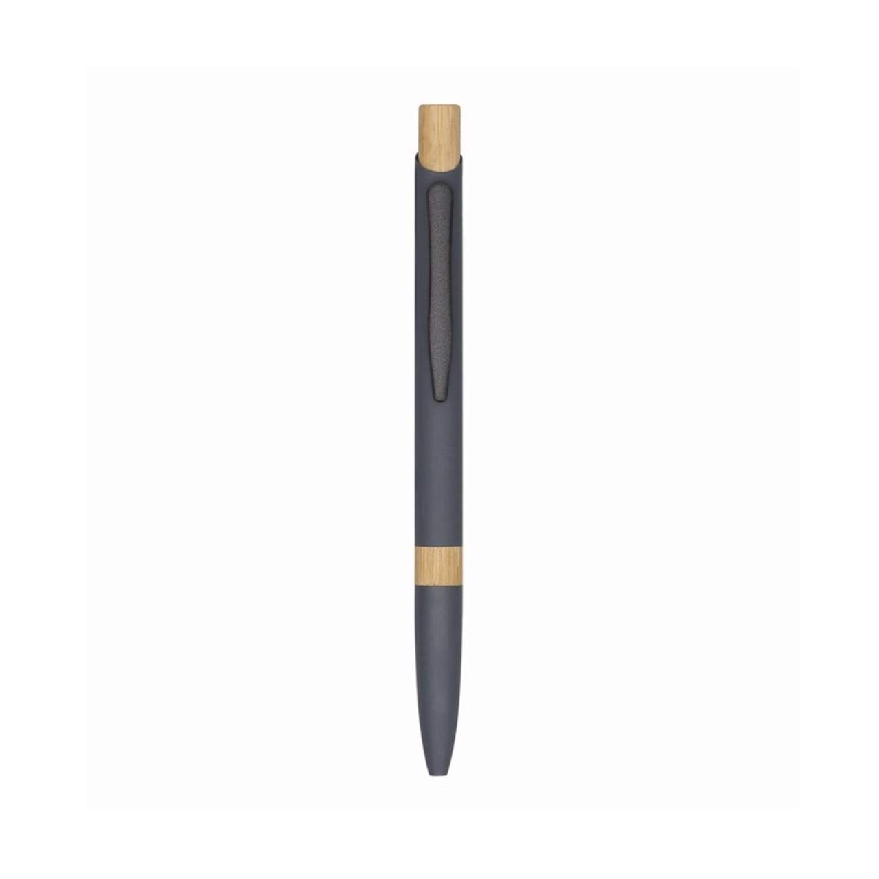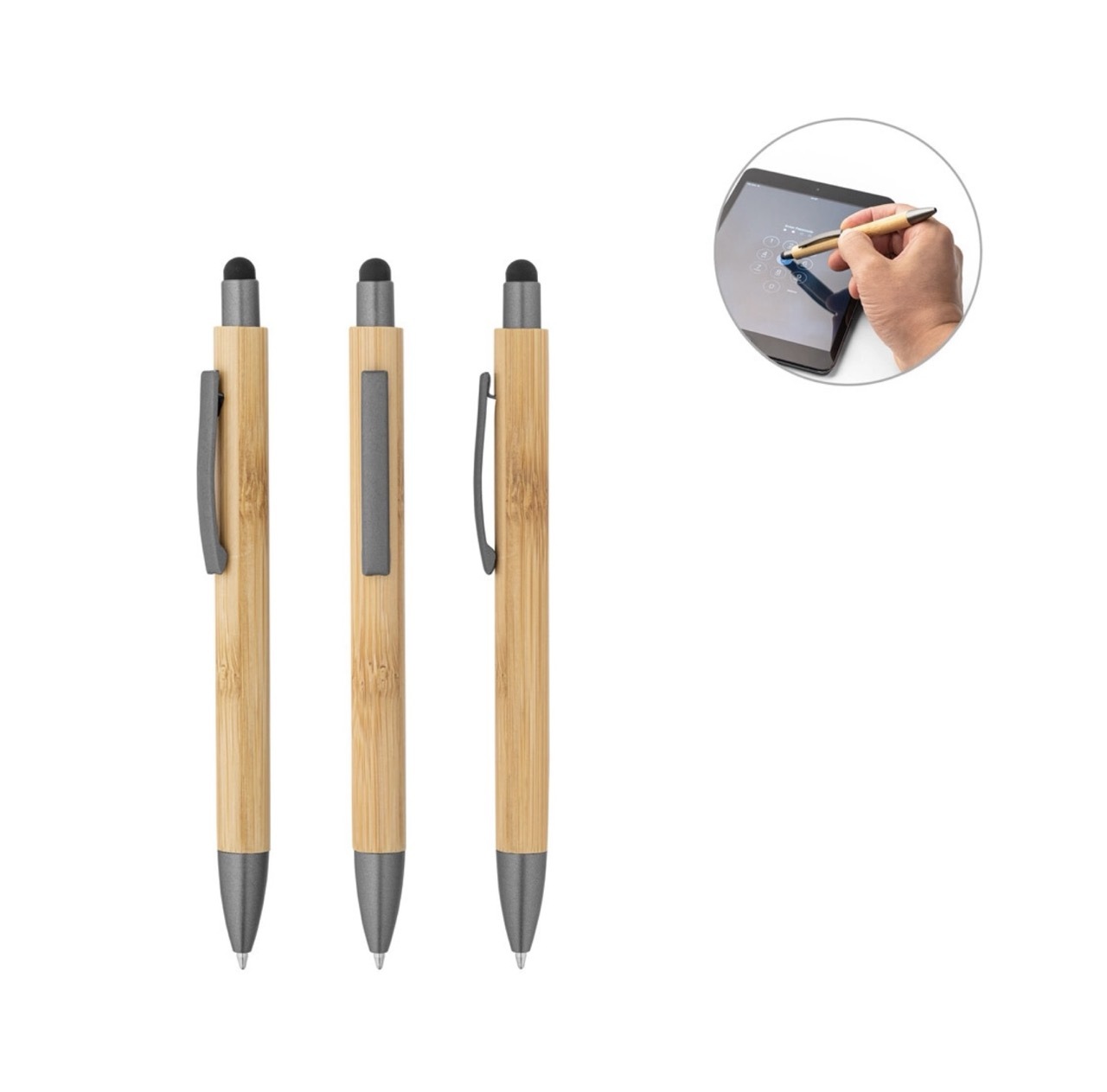 Бамбуковая шариковая ручка с металлическим зажимом, элементами PP и матовым покрытием. Имеет сенсорный наконечник серого металлического цвета для соответствующего контакта с сенсорными экранами.