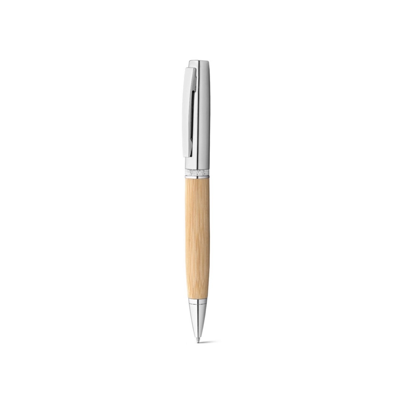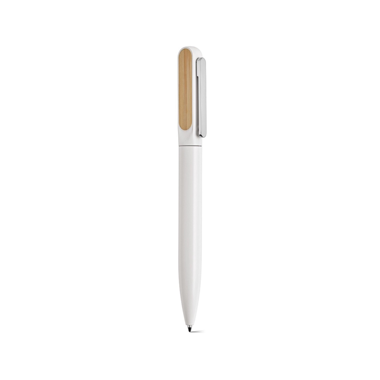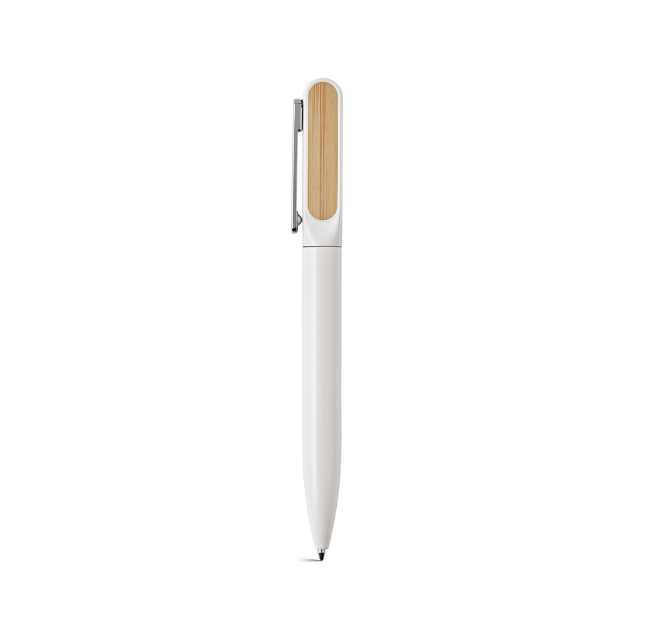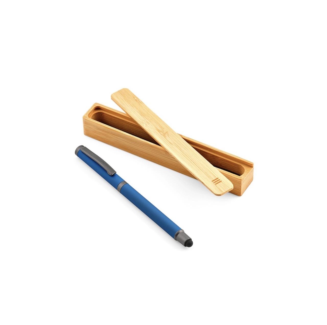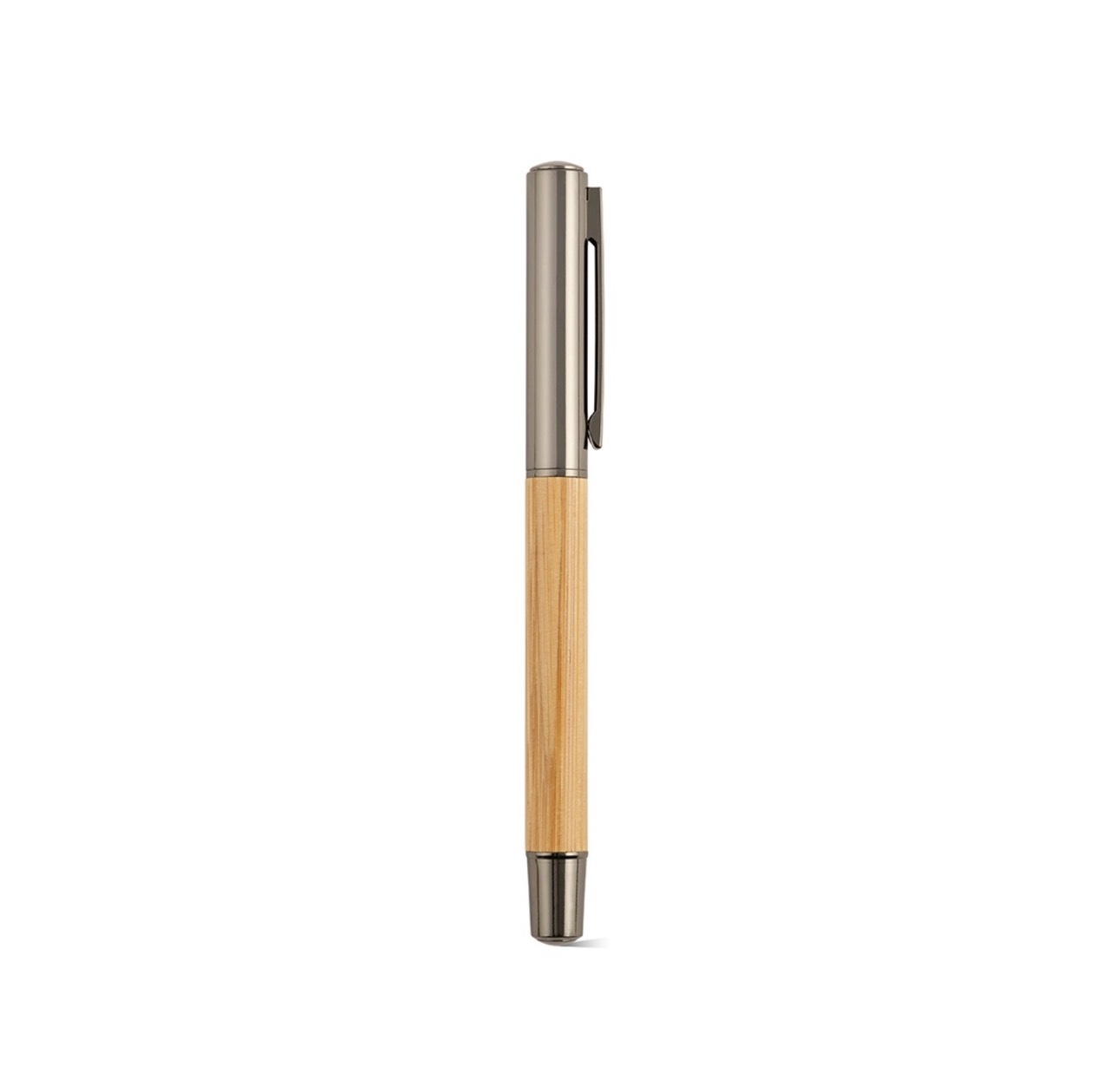 Бамбуковая шариковая ручка с металлическим зажимом, элементами PP и матовым покрытием. Имеет сенсорный наконечник серого металлического цвета для соответствующего контакта с сенсорными экранами.