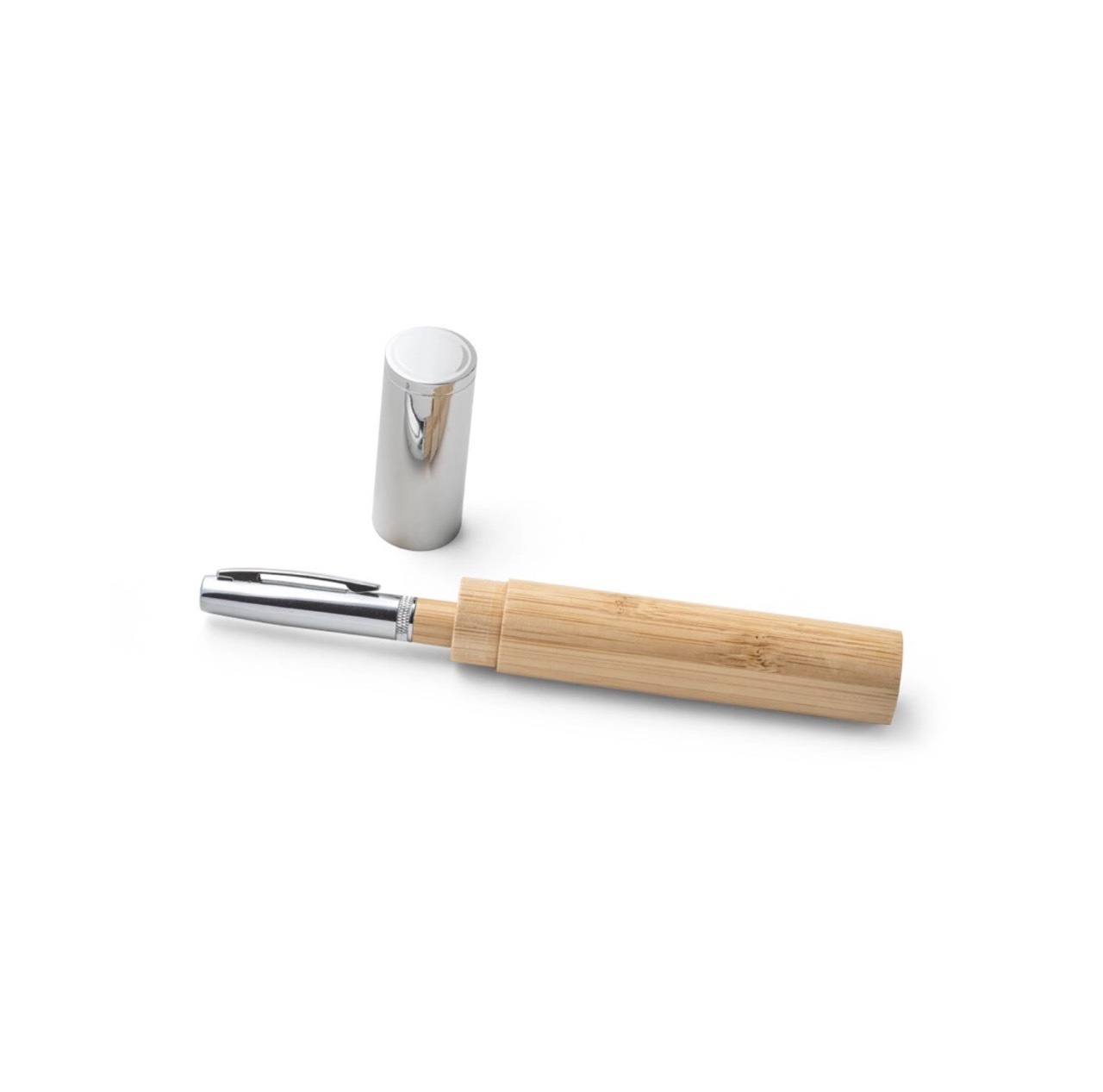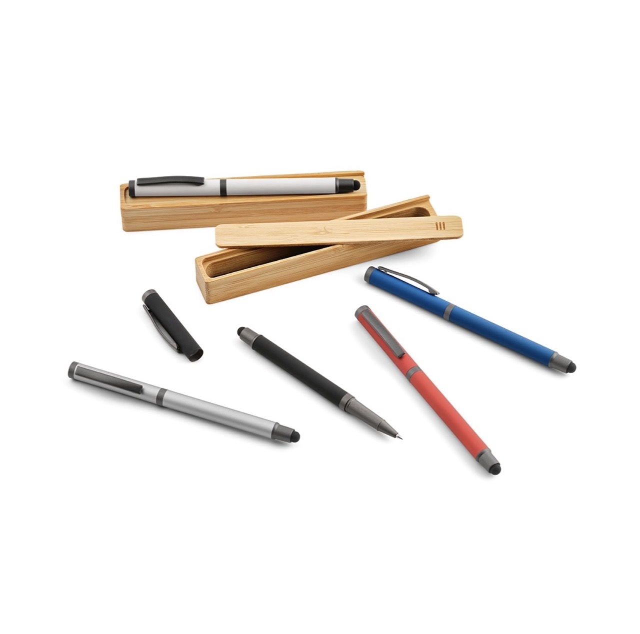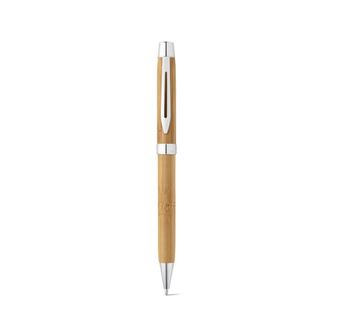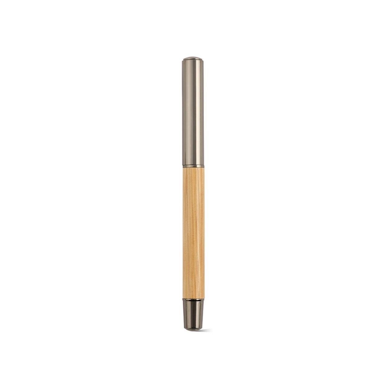Бамбуковая шариковая ручка с металлическим зажимом, элементами PP и матовым покрытием. Имеет сенсорный наконечник серого металлического цвета для соответствующего контакта с сенсорными экранами.