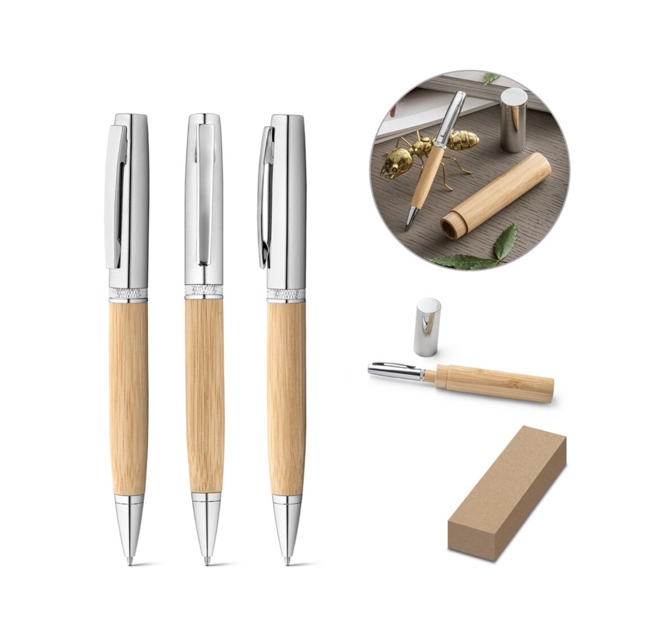 Симфония устойчивости и стиля, наша ручка имеет корпус из переработанного алюминия и rABS с бамбуковым верхом. Система вращения высвобождает 1 км синих чернил Dokumental®, все элегантно представлено в индивидуальной бамбуковой коробке.