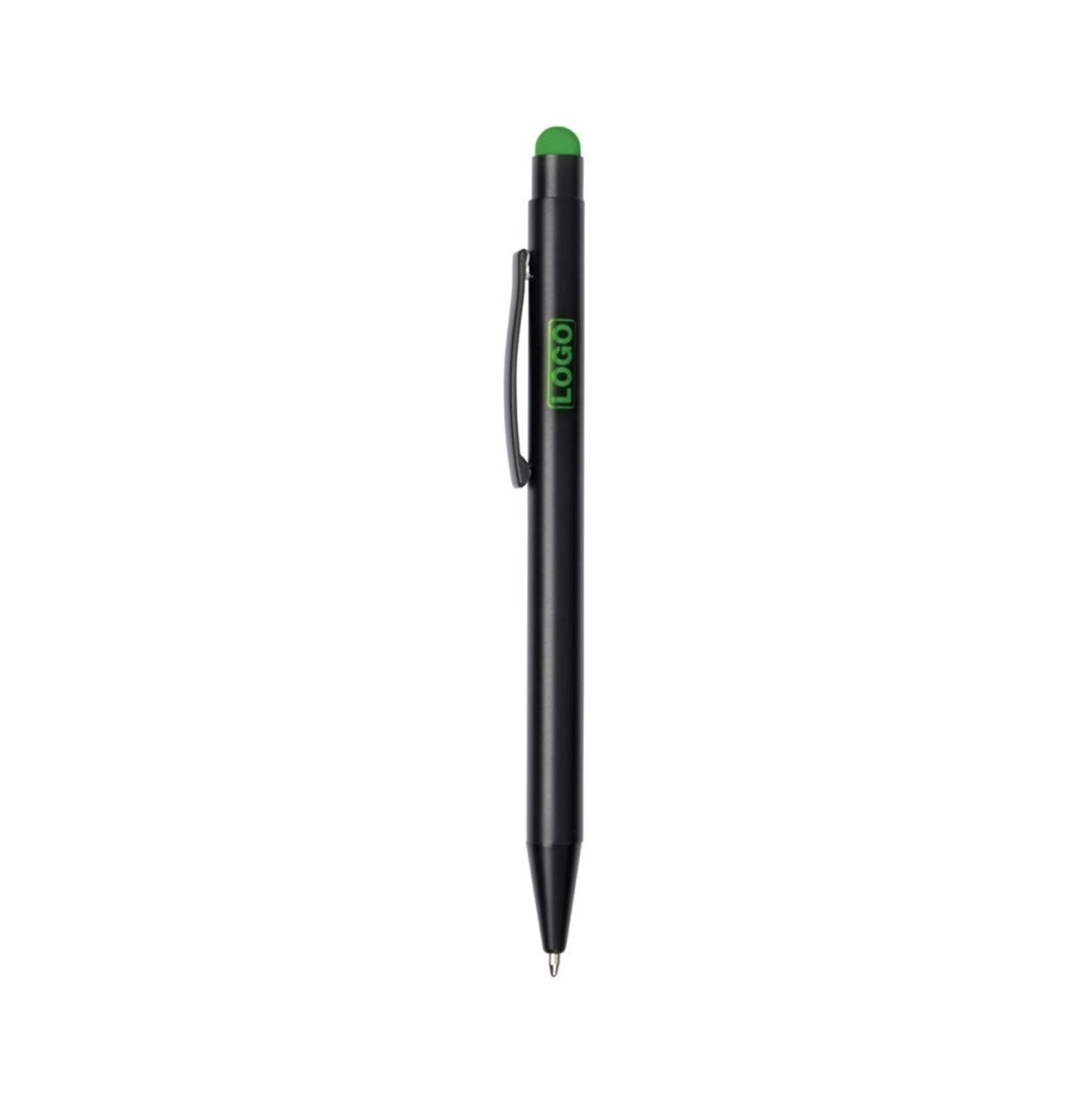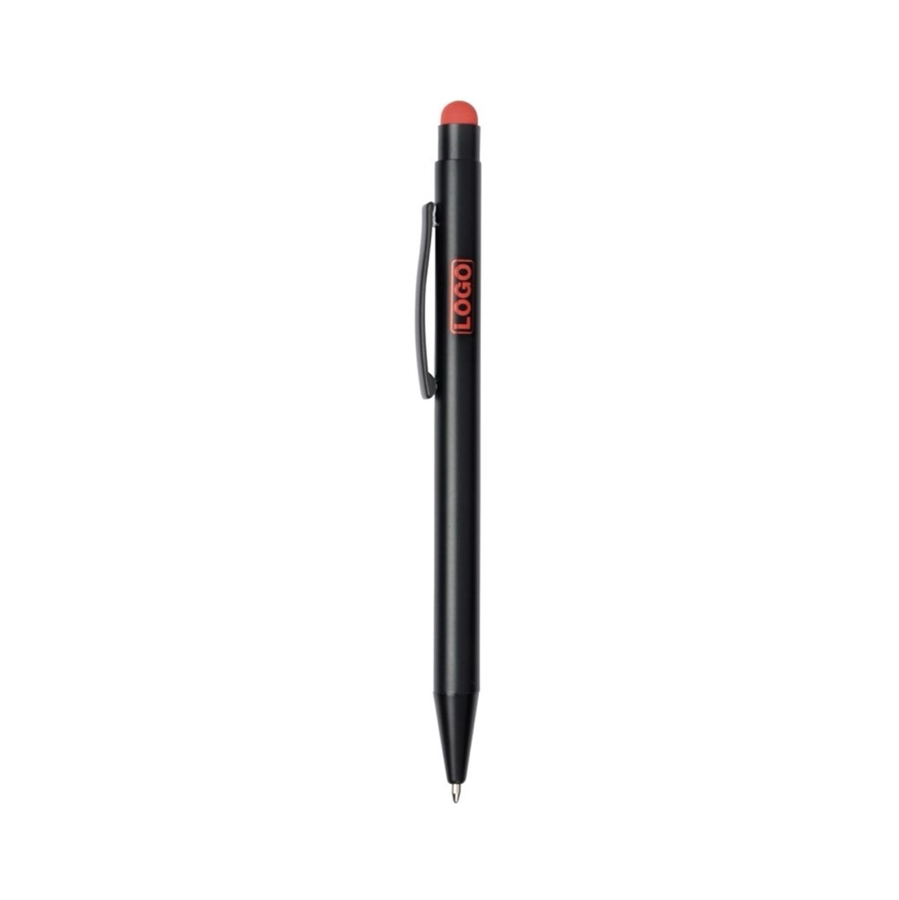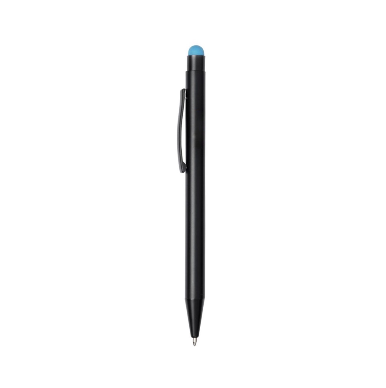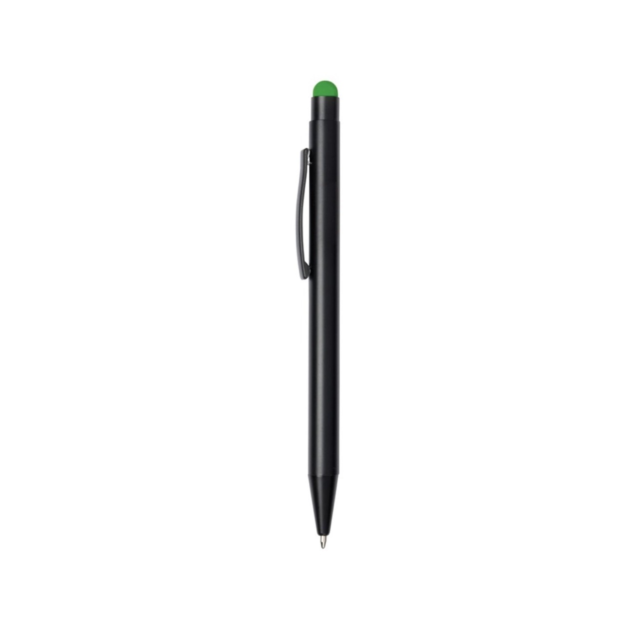 Алюминиевая шариковая ручка, с большим наполнителем, стилусом для сенсорных экранов, матовая поверхность с цветной ocновой для гравировки, соответствующей цвету стилуса.