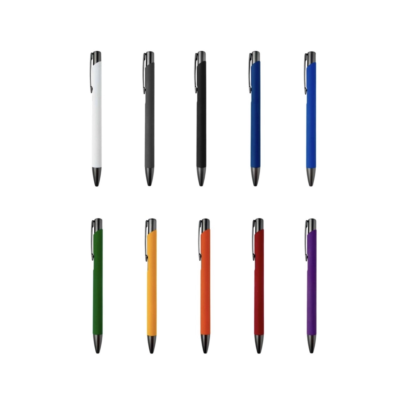 Металлическая ручка из коллекции премиум шариковых ручек - это выбор людей, предпочитающих комфорт, стиль и минимализм. Это ручка с нажимным механизмом, мягкой на ощупь поверхностью soft-touch и идеально золотым цветом клипа. Европейский стержень в металлическом корпусе имеет наконечник из нержавеющей стали и вольфрамово - карбидный шарик. Чернила соответствуют стандарту ISO, а длина письма составляет примерно 1000 метров. Логотип Вашей компании будет гравироваться золотым цветом.
