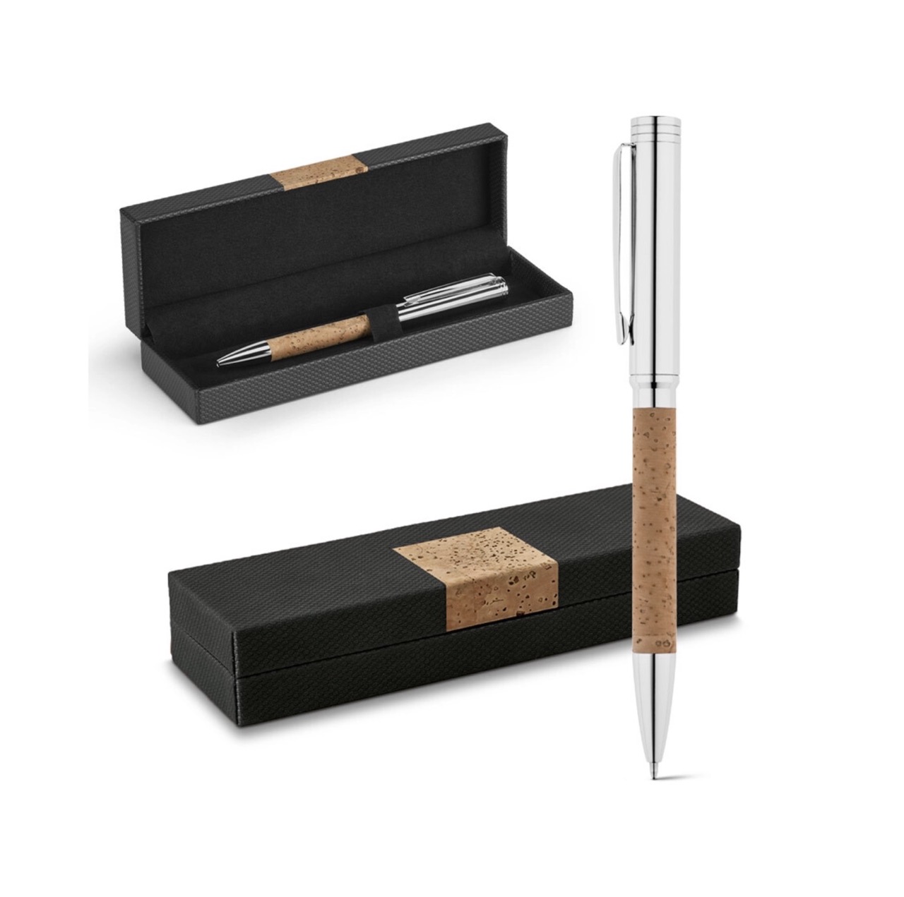 Шариковая ручка из пробки и металла, вдохновленная пробковым дубом. Шариковая ручка с поворотным механизмом и зажимом. Поставляется в подарочном футляре с пробковой деталью.