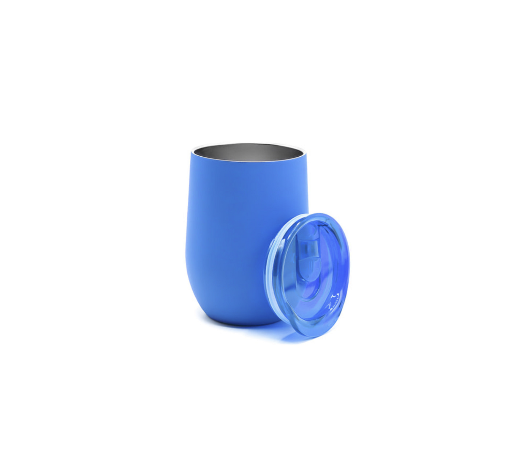 Изящная металлическая термокружка с покрытием soft touch. Внутренние стенки из нержавеющей стали. Крышка пластиковая в цвет самой кружки. Объём - 400 мл.